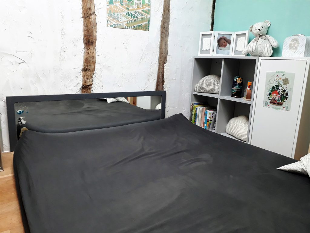 A l’âge de 3 mois nous avons mis notre fils (qui faisait ses nuits) dans sa chambre, dans son lit à barreaux. A 4 mois il s’est retourné et nous a réveillé plusieurs fois par nuit en se coinçant les bras ou les jambes dans les barreaux. La maternité nous avait conseillé de ne pas mettre de tour de lit avant les 6 mois pour prévenir les risques de mort subite du nourrisson. L’idée d’un matelas au sol nous avons avait intéressée mais je ne me voyais laisser mon petit bout tout seul au sol au milieu de sa grande chambre. Je dois avouer que l’image sociale jouait beaucoup aussi ! « Par terre oh le pauvre ! » J’imaginais déjà les grands-mères offusquées !!! Après une semaine à coup de 3 ou 4 réveils nocturnes, j’oubliais tout ça ! Nous nous sommes lancés, nous avons tâtonné quelques jours avant de trouver la formule idéale pour nous et mini G !